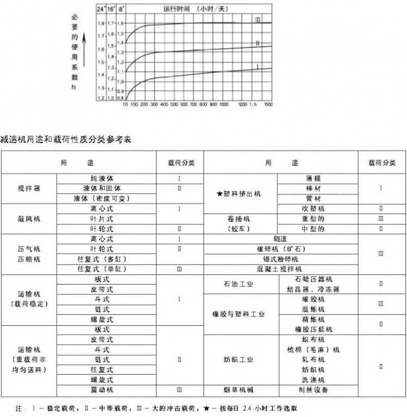 在确定使用系数之前先确定一天的运行小时数,每小时的起停次数和负载类型。其中负载类型按下列公式计算